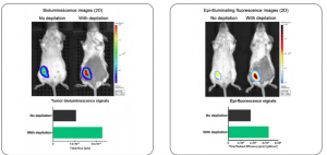 图注:去毛能显著提升表面荧光成像信号;毛发同时阻挡激发与发射光,腹部去毛后注射点荧光明显增强。
